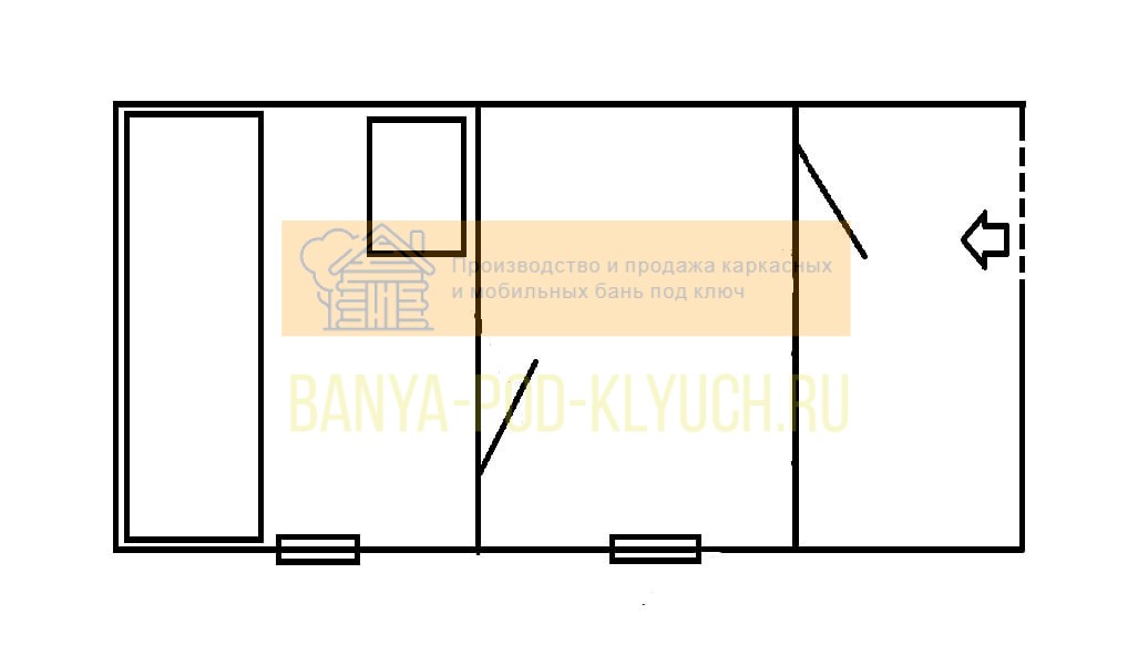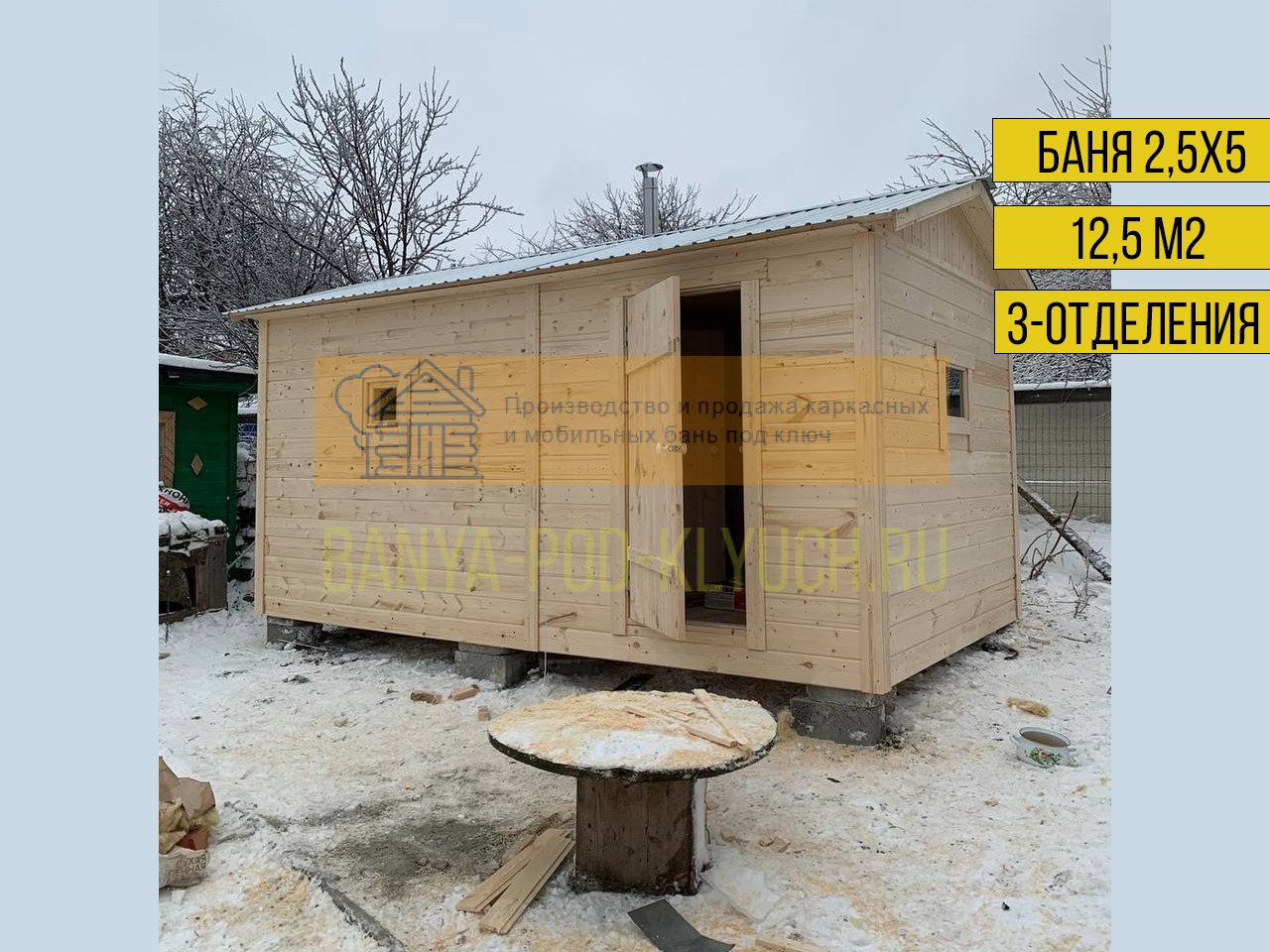 Каркасная Баня 2,5 X 5 на 3 отделения БН-34