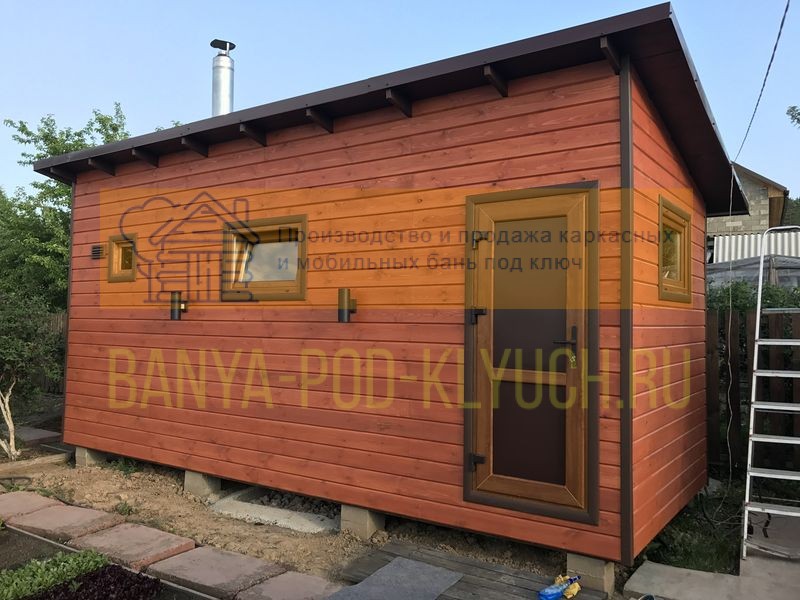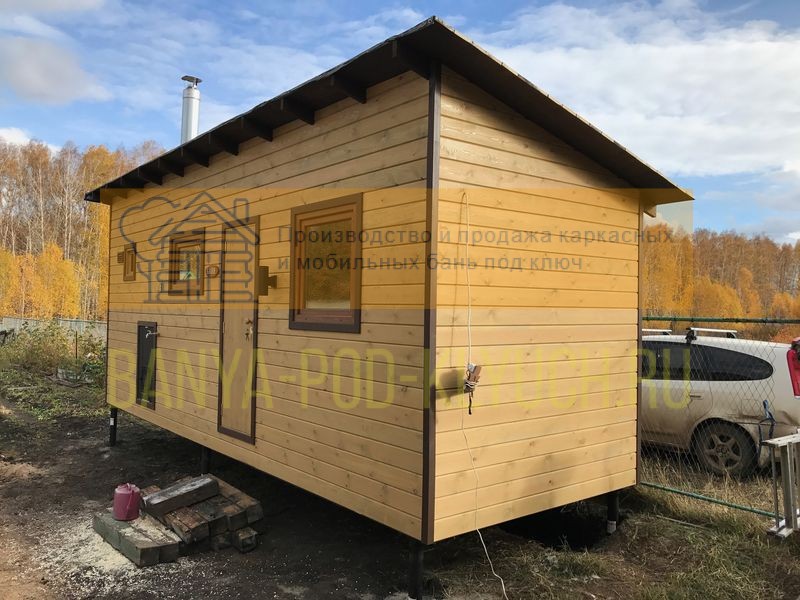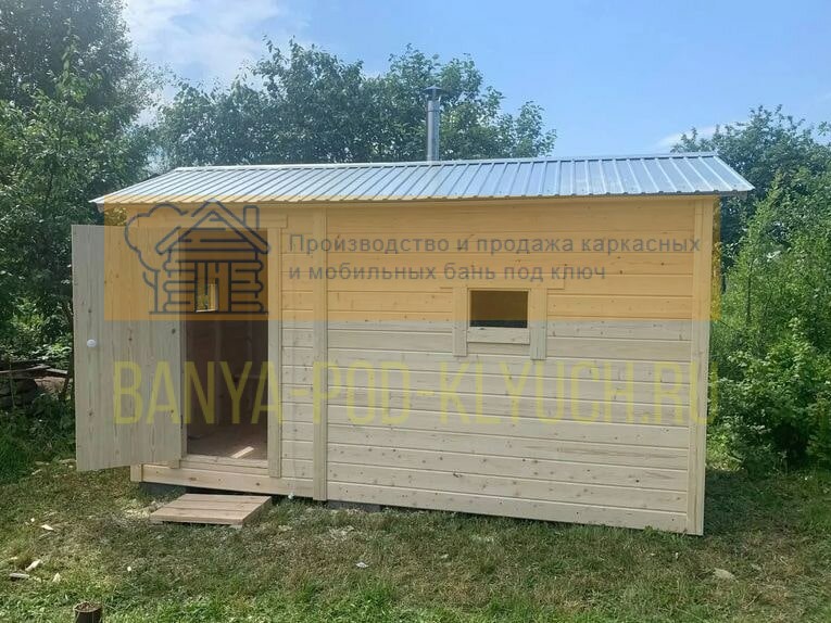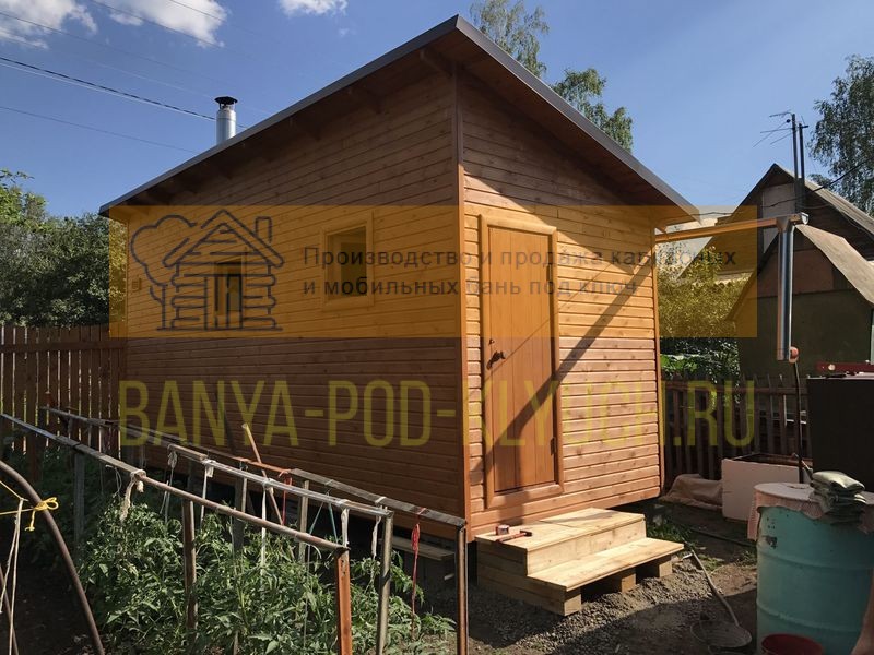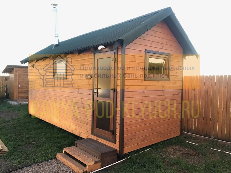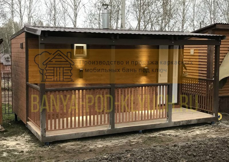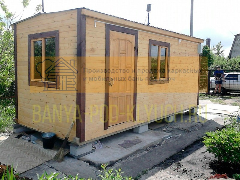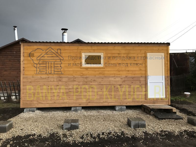 Идеальное сочетание цены и качества! Наша мобильная баня-бытовка размером 3х5 метров — оптимальный вариант для тех, кто хочет купить готовую баню недорого.
